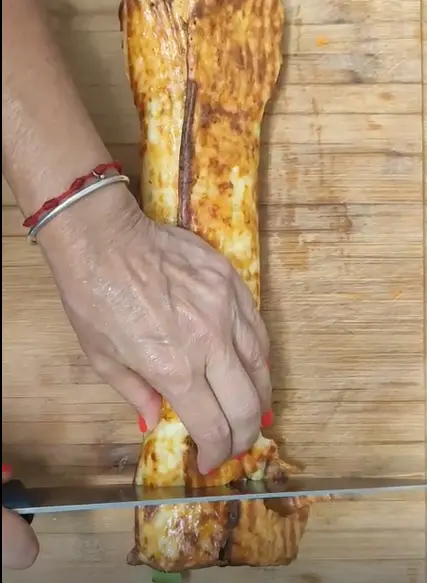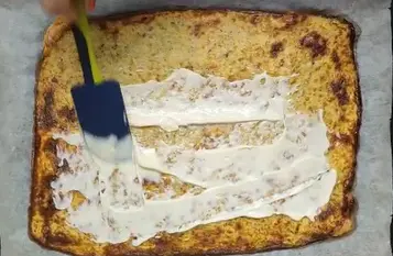 Pon en una fuente de horno las 4 lonchas de queso que son opcionales, extiende la mezcla y reparte bien en forma de rectángulo.