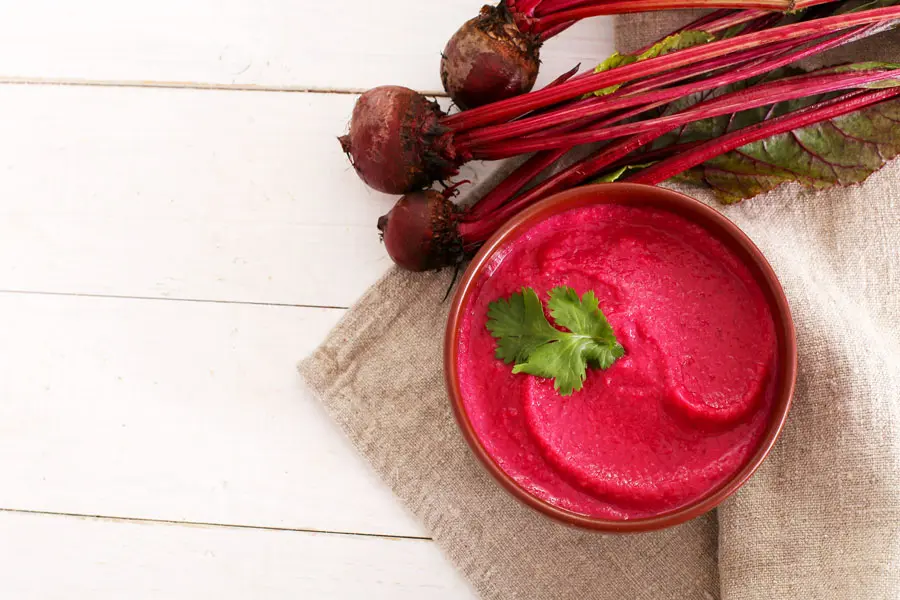 Añade la remolacha, el queso, el agua, la leche de avena, los anacardos, la sal y la pimienta a la batidora.